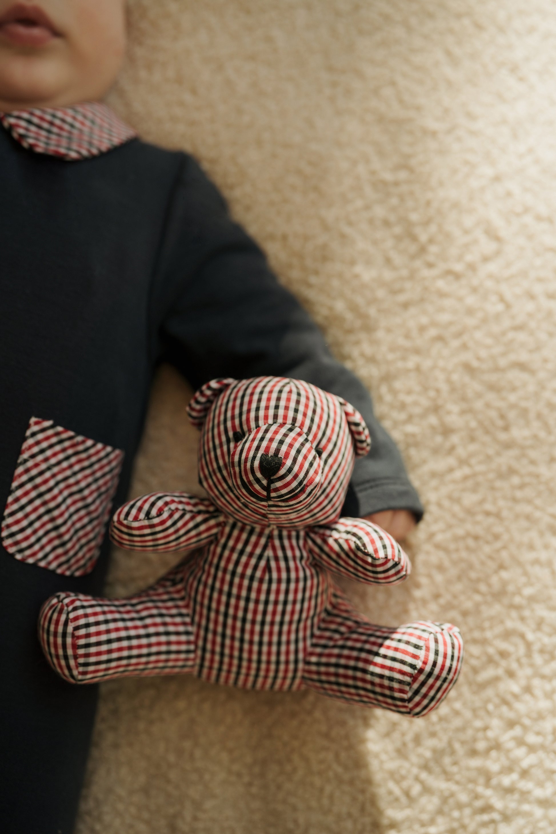 Pair your little one’s « Bleu Précieux » pyjama with this matching checkered teddy bear, a charming companion to make bedtime even more cozy and magical.